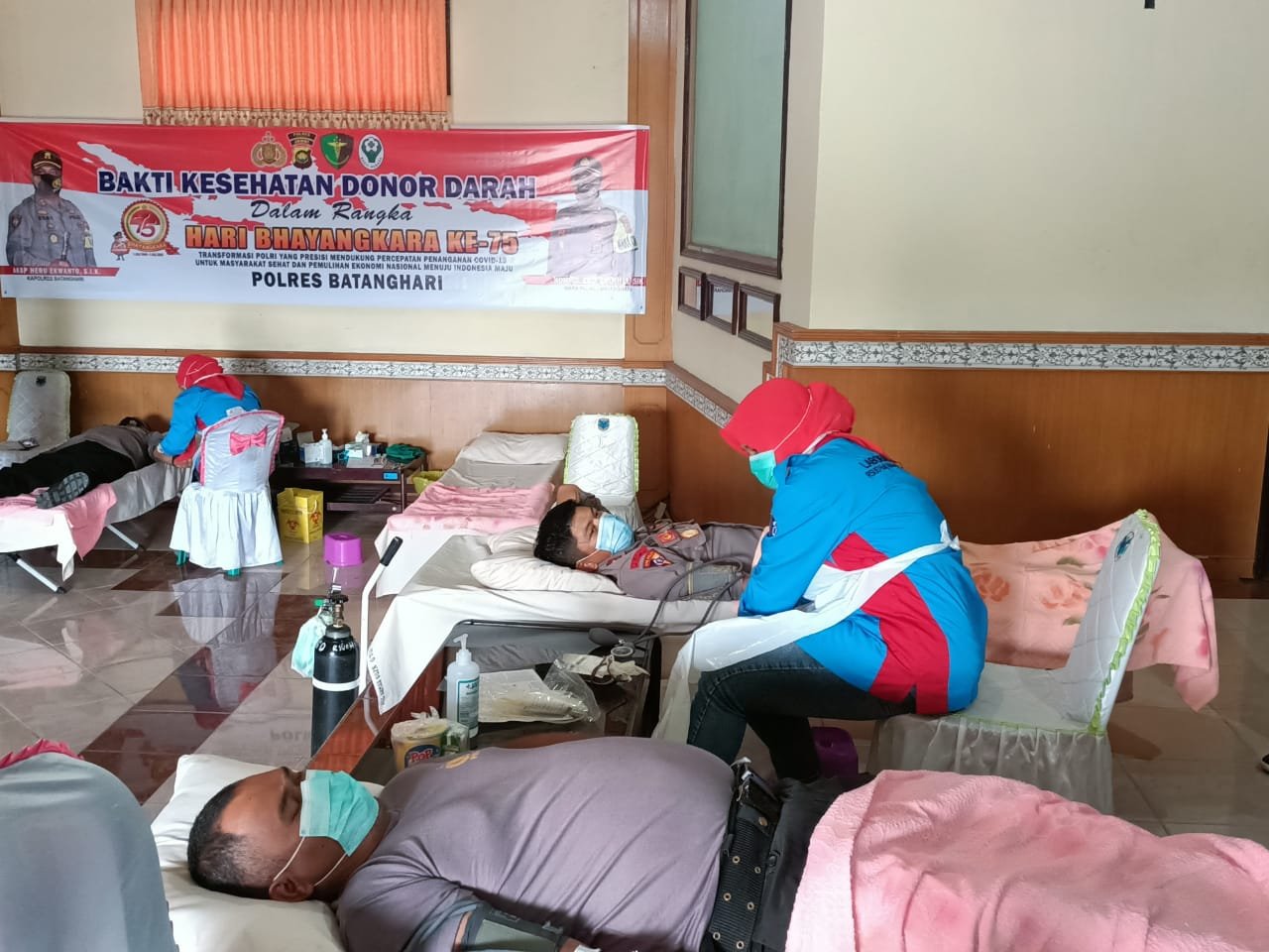 Kegiatan donor darah dilakukan dalam Rangka menyambut HUT Bhayangkara ke-75 Tahun 2021 di Polres Batanghari.