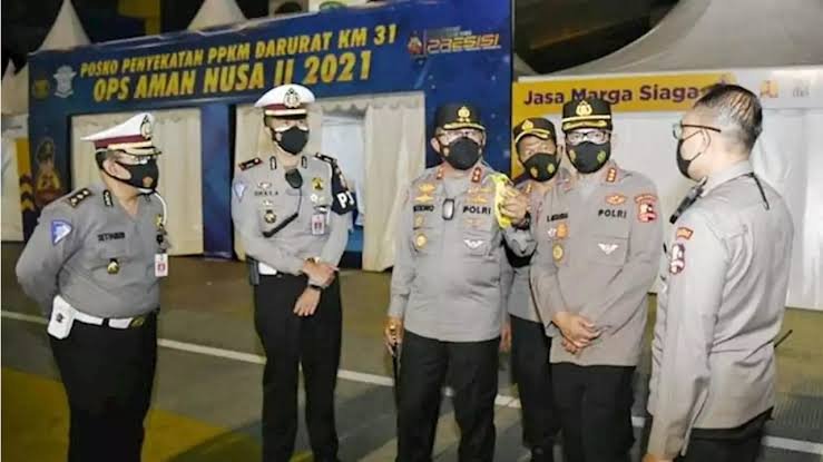 MATTANEWS.CO, JAKARTA– Kakorlantas Polri Irjen Istiono meninjau posko penyekatan PPKM Darurat di KM 31 Tol Jakarta-Cikampek, Cikarang Barat, Bekasi, Jawa Barat. Dia mengatakan, kepolisian meningkatkan pengawasan mobilitas kendaraan jelang perayaan Idul Adha 1442 H/2021 M.