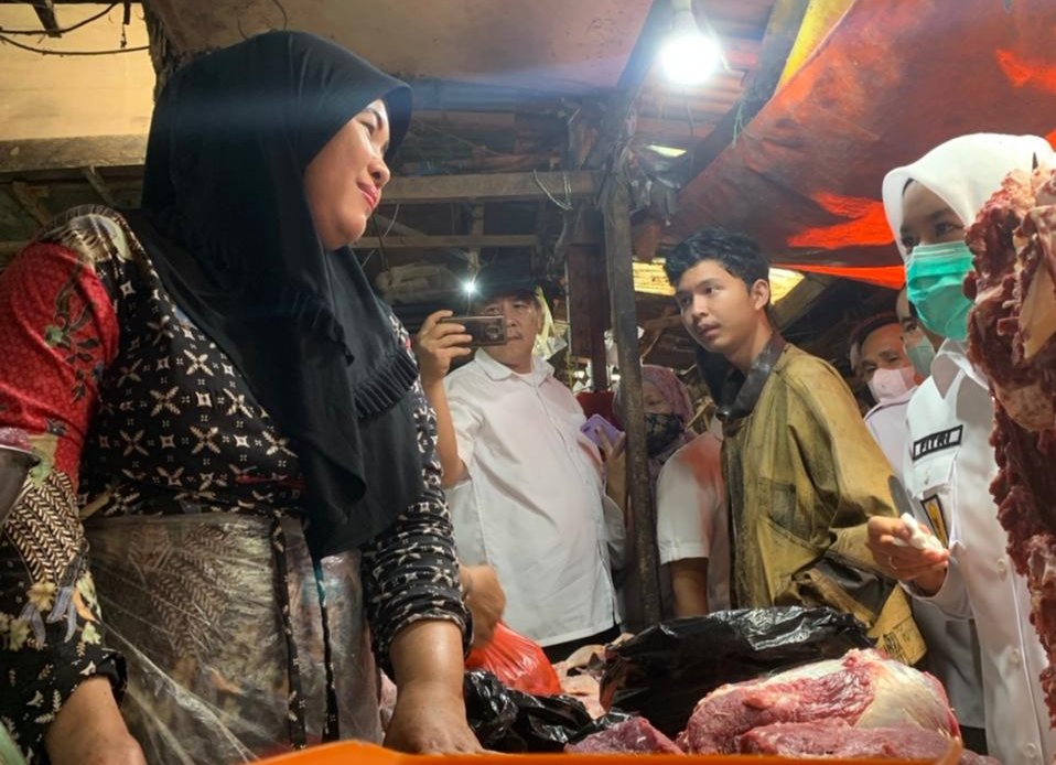 Melalui Wakil Wali Kota Palembang, Fitrianti Agustinda didampingi Kepala Dinas Pertanian dan Ketahanan Pangan, Sayuti, daging di Pasar Palimo dinilai aman dari Penyakit Mulut dan Kuku (PMK)