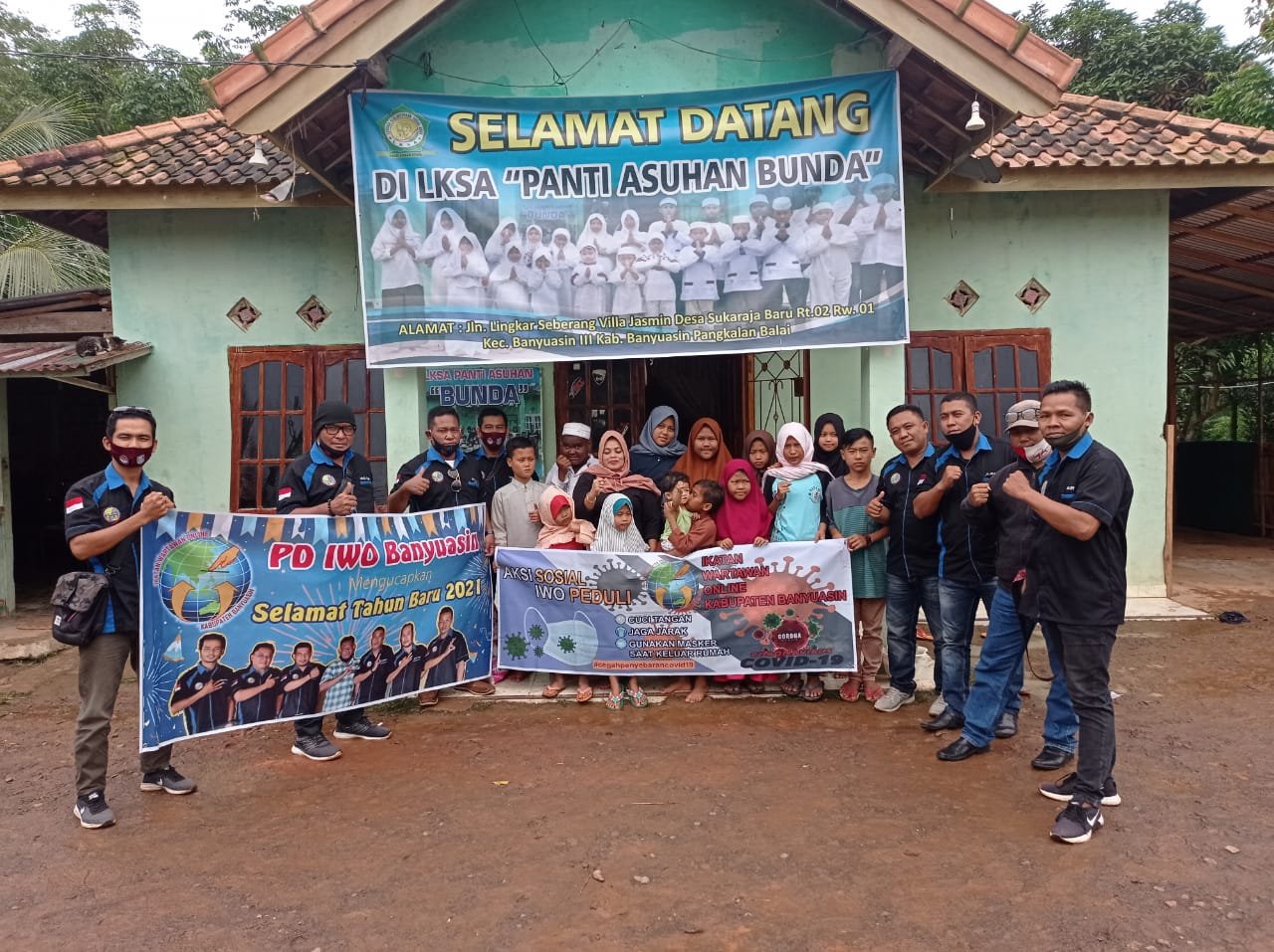 Menjelang tutup Tahun, menyambut tahun baru 2021 kali ini Pengurus Daerah Ikatan Wartawan Online PD IWO Banyuasin, mengadakan kegiatan Bakti Sosial dan Santunan ke salah satu Panti Asuhan Anak Yatim Piatu di Yayasan Panti Asuhan Bunda kabupaten Banyuasin, Jalan Lingkar Seberang Villa Jasmin Desa Sukaraja Baru RT 002 RW 001 BANYUASIN- III, Kamis (31/12/2020).