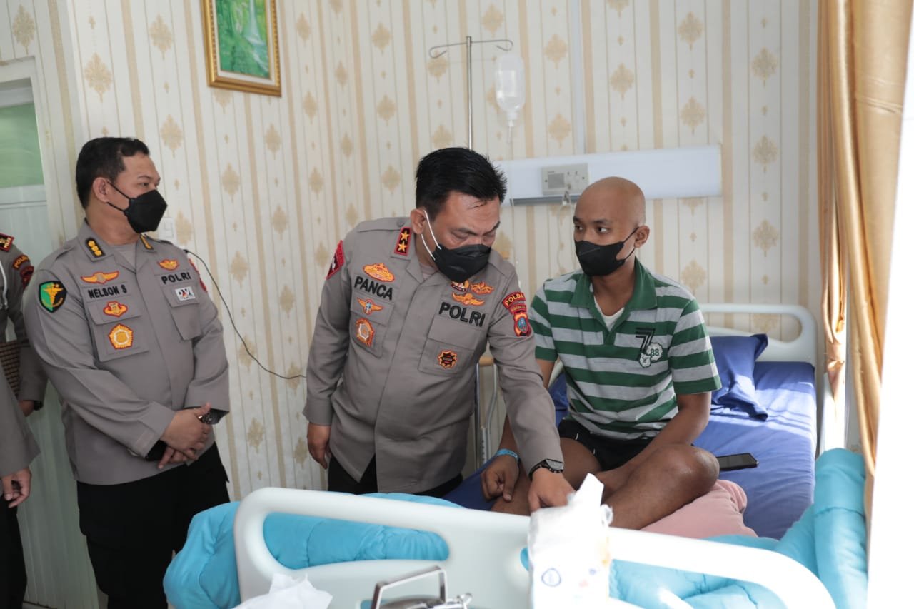 Kapolda Sumut menjenguk personil Dit Samapta Polda Sumut Bripda Crisna Josuan Nadeak yang saat ini tengah menjalani perawatan di Rumah Sakit Bhayangkara