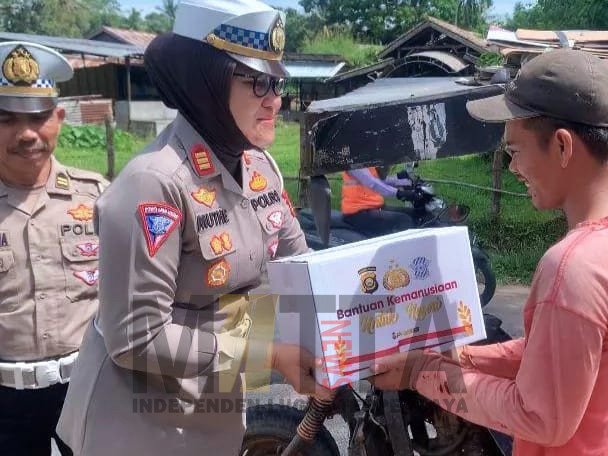 Kapolres Prabumulih, AKBP Witdiardi SIk MH melalui Kasat Lantas, AKP Muthemainah SH menyerahkan langsung 25 paket sembako kepada masyarakat kurang mampu memerlukan atau membutuhkan.