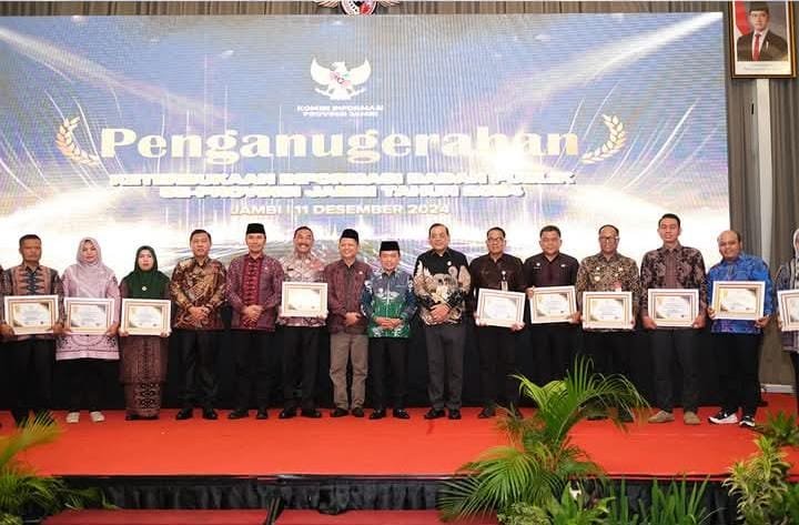 Penghargaan Anugerah Keterbukaan Informasi Badan Publik tahun 2024 diterima langsung oleh Bupati Batanghari Mhd Fadhil Arief yang diserahkan langsung oleh Gubernur Jambi.