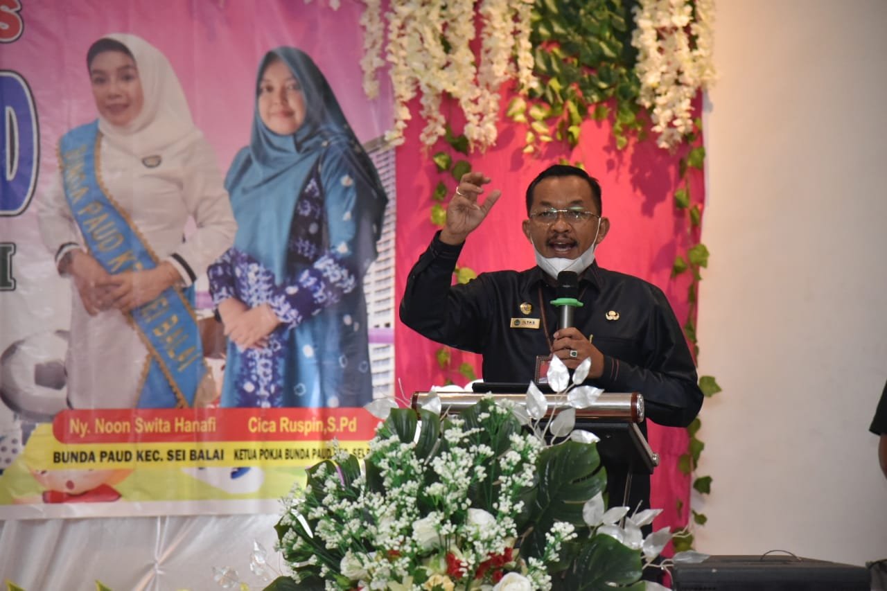 Hal tersebut disampaikan Bunda PAUD Kabupaten Batu Bara Ny. Maya Indriasari Zahir saat memberikan sambutan usai menyaksikan Pengukuhan Kelompok Kerja Bunda Pendidikan Anak Usia Dini ( POKJA Bunda PAUD) Kecamatan Sei Balai oleh  Ketua Pokja Bunda Paud Kabupaten Batu Bara Ny. Erlina Yusuf bertempat di Aula Top Hill Singapore City Land Hotel, Rabu sore (29/09/2021).