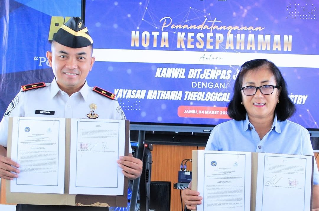 Sementara itu, Ketua Yayasan Nathania Theological Seminary Ministry menyampaikan apresiasi atas kepercayaan yang diberikan Kanwil Ditjenpas Jambi dan menyatakan kesiapan yayasan untuk berkontribusi aktif dalam kegiatan pembinaan rohani di Lapas dan Rutan.