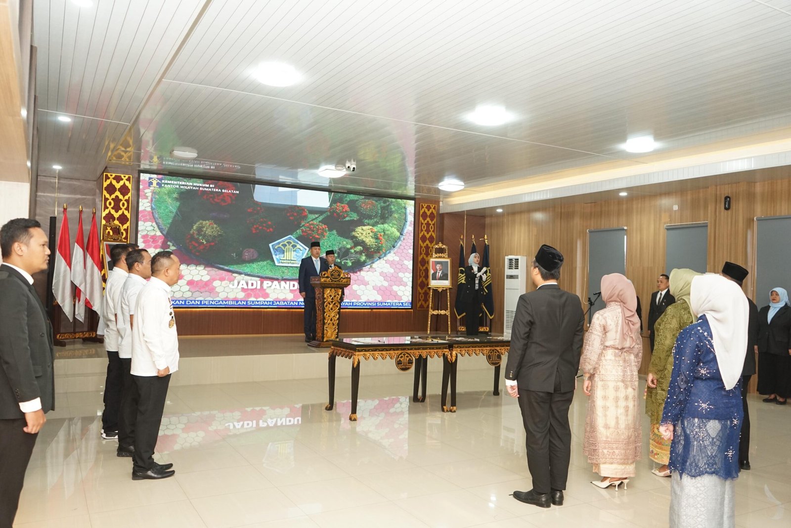MATTANEWS.CO, PALEMBANG – Kepala Kantor Wilayah Kementerian Hukum Sumatera Selatan melantik dan mengambil Sumpah Jabatan Notaris di Wilayah Provinsi Sumatera Selatan. Pelantikan 11 (Sebelas) orang Notaris baru dilaksanakan di Aula Musi Kanwil Kemenkum Sumsel, Rabu (08/01). Notaris tersebut berasal dari Kabupaten Musi Banyuasin, Kabupaten Banyuasin, Kabupaten Prabumulih dan Kabupaten Lahat.