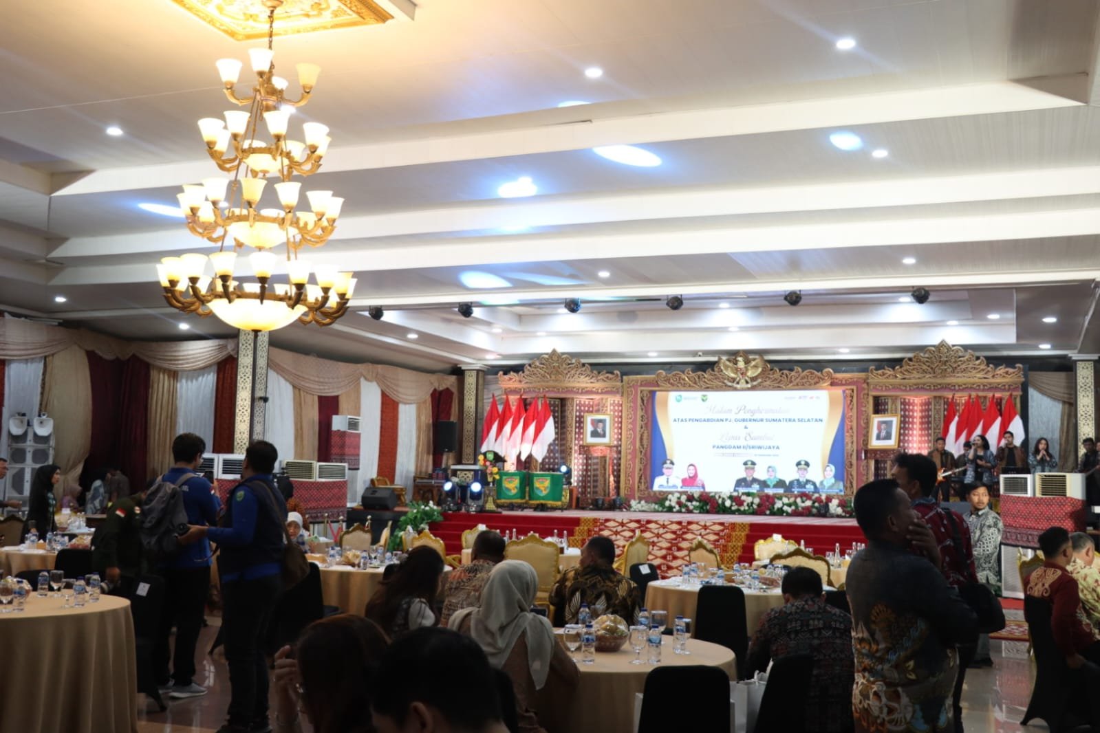 MATTANEWS.CO, PALEMBANG – Kakanwil Kemenkum Sumsel, Agato PP Simamora menghadiri langsung malam penghormatan atas pengabdian Pj. Gubernur Sumatera Selatan sekaligus lepas sambut Pangdam II/Sriwijaya bertempat di Griya Agung Palembang, Selasa (18/2). Acara yang berlangsung khidmat dan penuh kebersamaan ini dihadiri oleh berbagai unsur Forkopimda, Pejabat Pemerintah Daerah, serta Tokoh Masyarakat di Sumatera Selatan.