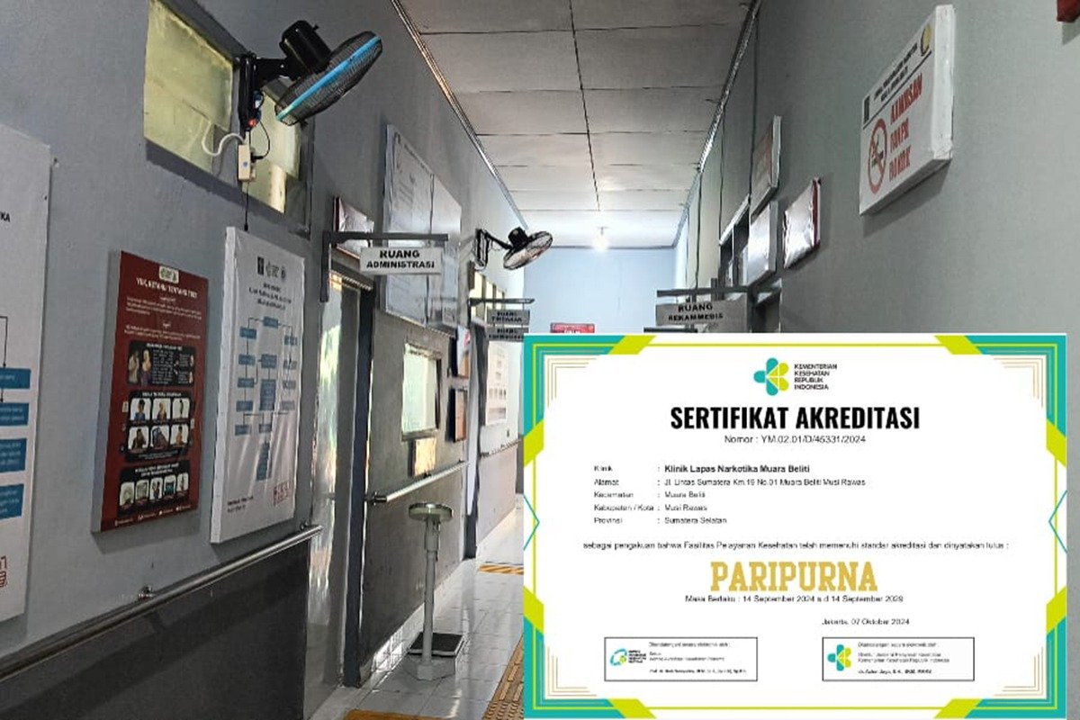 MATTANEWS.CO, PALEMBANG – Klinik di Lembaga Pemasyarakatan (Lapas) Narkotika Kelas IIA Muara Beliti resmi mendapatkan sertifikat akreditasi paripurna dari Kementerian Kesehatan Republik Indonesia (Kemenkes RI).