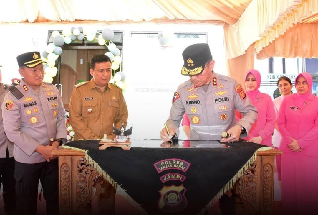 Dalam rangkaian kegiatan, Kapolda Jambi meresmikan klinik dan asrama baru di lingkungan Polres Tanjab Barat. Fasilitas ini dibangun sebagai wujud nyata peningkatan pelayanan dan kesejahteraan anggota Polri di wilayah tersebut.