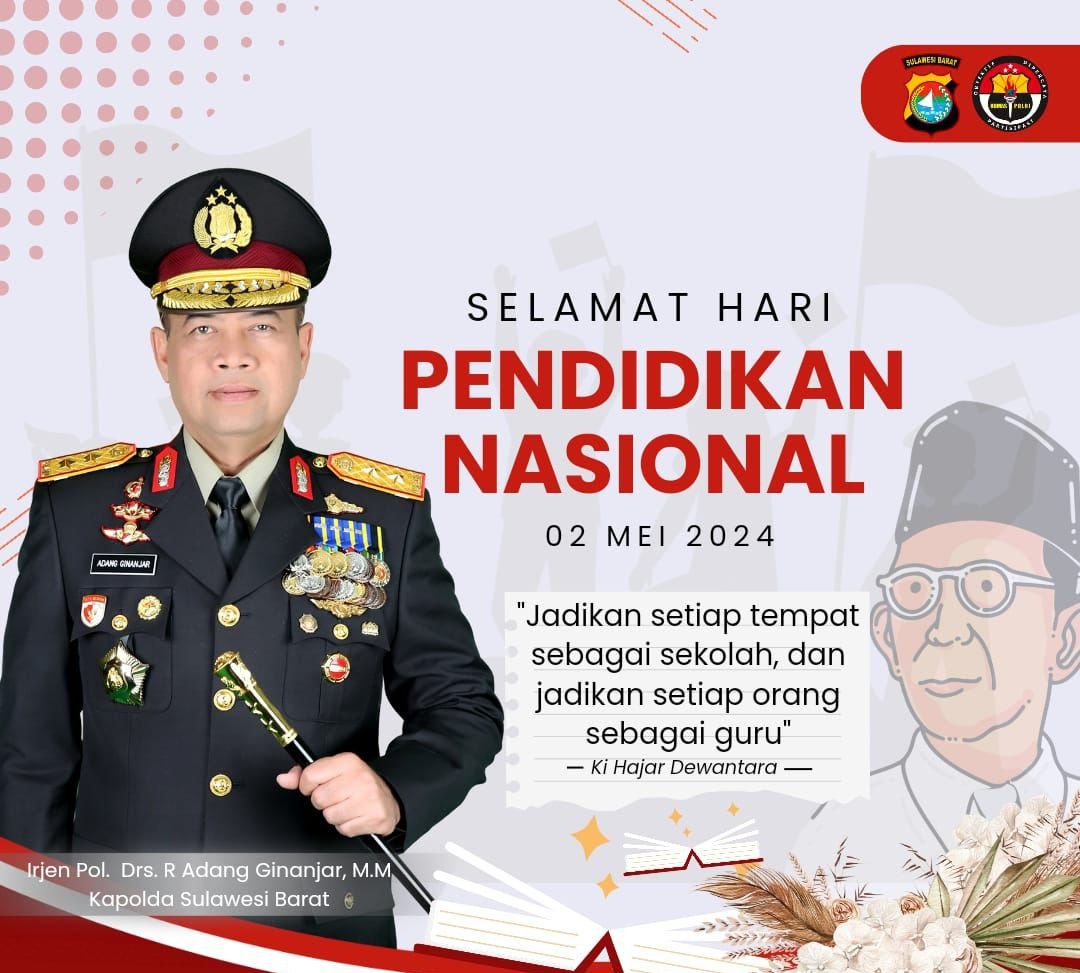 Kapolda Sulawesi Barat, Irjen Pol Adang Ginanjar, tidak ketinggalan dalam merayakan hari penting ini. Dalam pesan singkatnya, Irjen Pol Adang Ginanjar menyampaikan ucapan selamat kepada seluruh masyarakat Indonesia, terutama kepada para pendidik, tenaga kependidikan, serta pelajar.