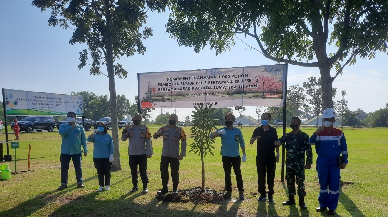 PRABUMULIH, Mattanews.co – Kapolda Sumatera Selatan (Sumsel) beserta jajaran managemen PT Pertamina EP Asset 2, melakukan penanaman pohon dan memberikan santunan sembako ke warga terdampak Covid-19.