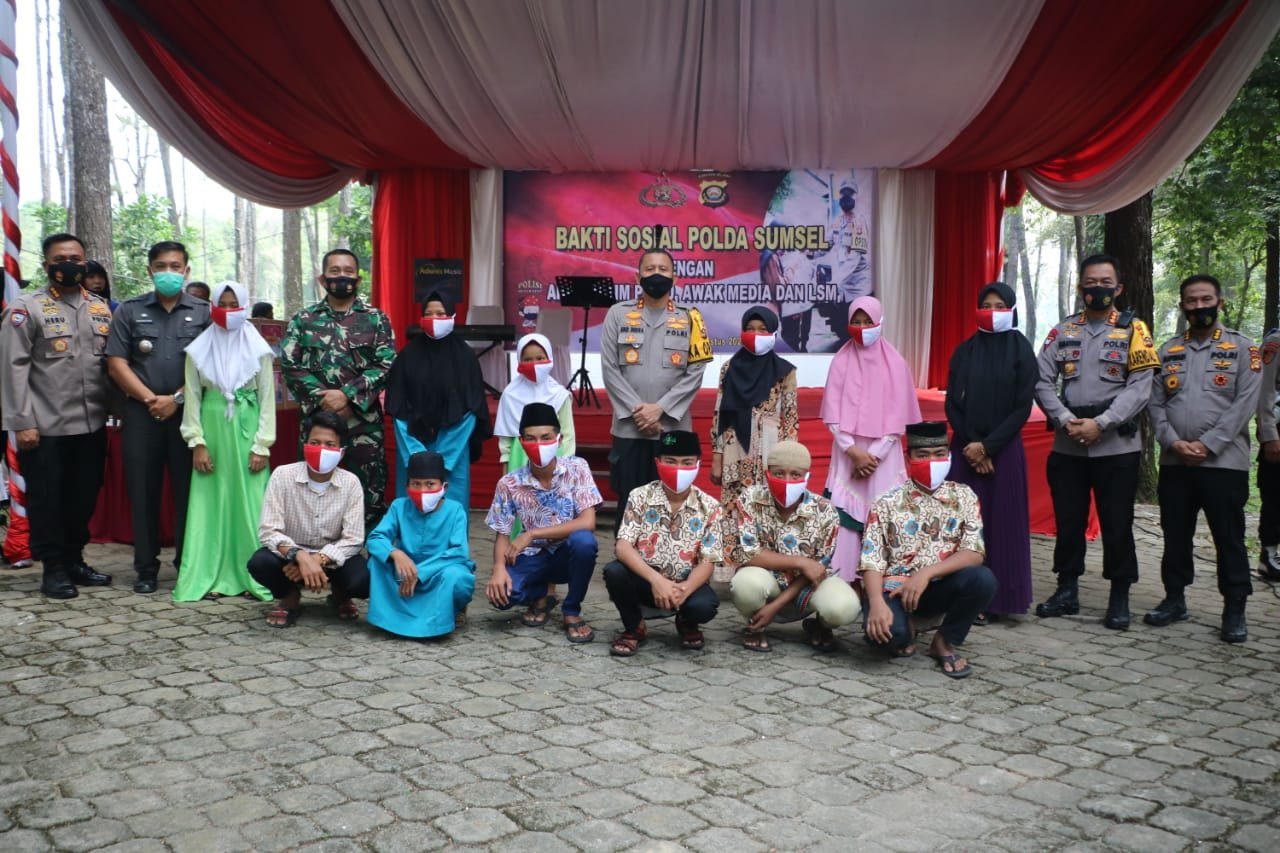 PALEMBANG, Mattanews.co – Kapolda Sumsel, Irjen Pol Prof Dr Eko Indra Heri S didampingi Para Pejabat Utama (PJU) Polda Sumsel dan Kapolrestabes Palembang, melakukan Bakti sosial Polda sumsel dengan memberikan bantuan kepada awak media, anak panti asuhan dan LSM, di Taman Wisata Punti Kayu Palembang, Sabtu (29/08/2020).