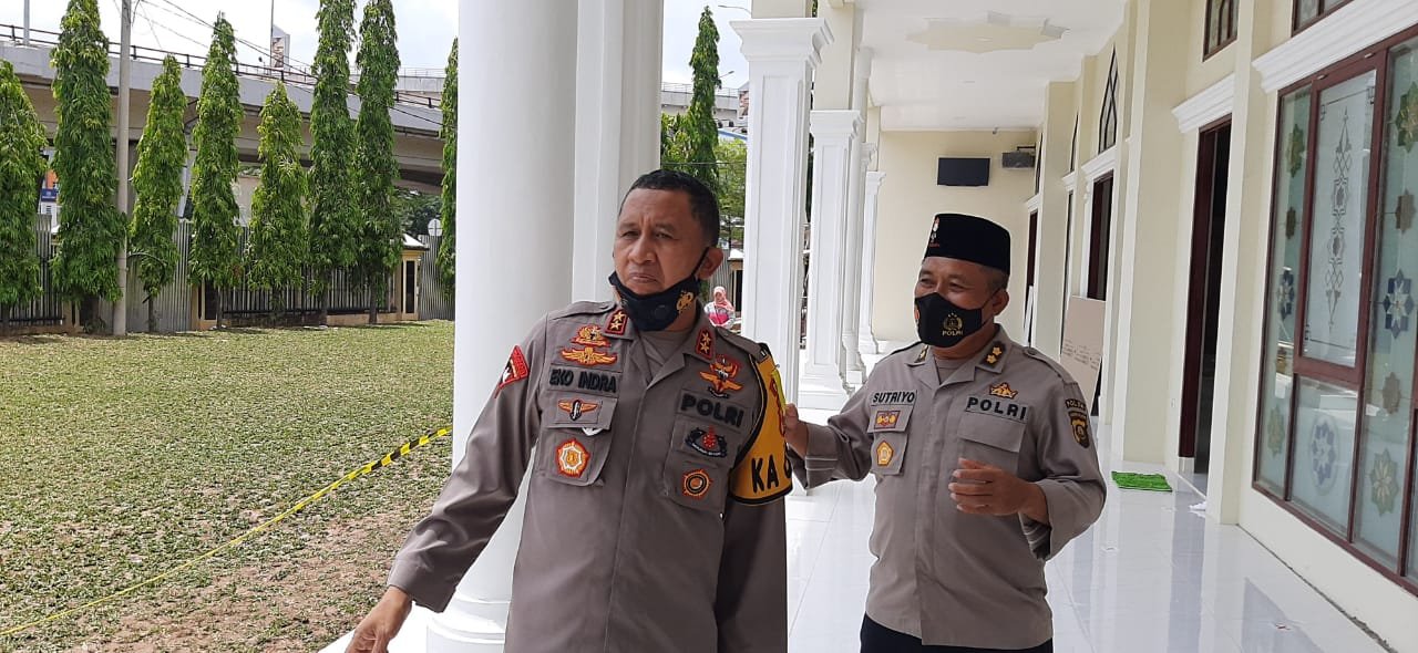 PALEMBANG, Mattanews.co – Kapolda Sumsel, Irjen Pol Prof Dr Eko Indra Heri S didampingi Kayanma Polda Sumsel, AKBP Sutriyo memeriksa perkembangan bangunan Masjid Assa’adah, di Mapolda Sumsel, Senin (19/10/2020).