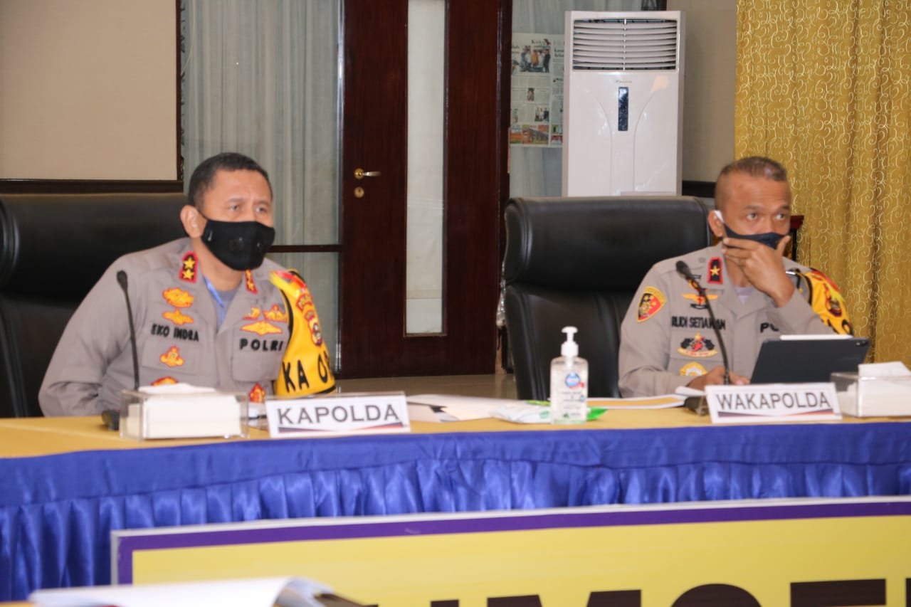 PALEMBANG, Mattanews.co – Kapolda Sumsel Irjen Pol. Prof. Dr. Eko Indra Heri S., M.M, didampingi Wakapolda Sumsel Brigjen Pol. Rudi Setiawan, S.I.K., S.H., M.H, memimpin rapat kesiapan pelaksanaan Pembatasan Sosial Berskala Besar (PSBB) wilayah Kota Palembang dan Prabumulih, bertempat di Ruang Catur Prasetya Mapolda Sumsel, Jalan. Jenderal Sudirman Km. 4,5 Palembang, Rabu (13/05/2020).