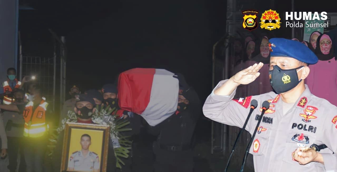 Kapolda Sumsel, Irjen Pol Prof Eko Indra Heri menjelaskan, menerima jenazah Bharatu (Anumerta) I Komang Wira Natha yang gugur dalam operasi Nemangkawi dengan upacara secara militer terakhir.
