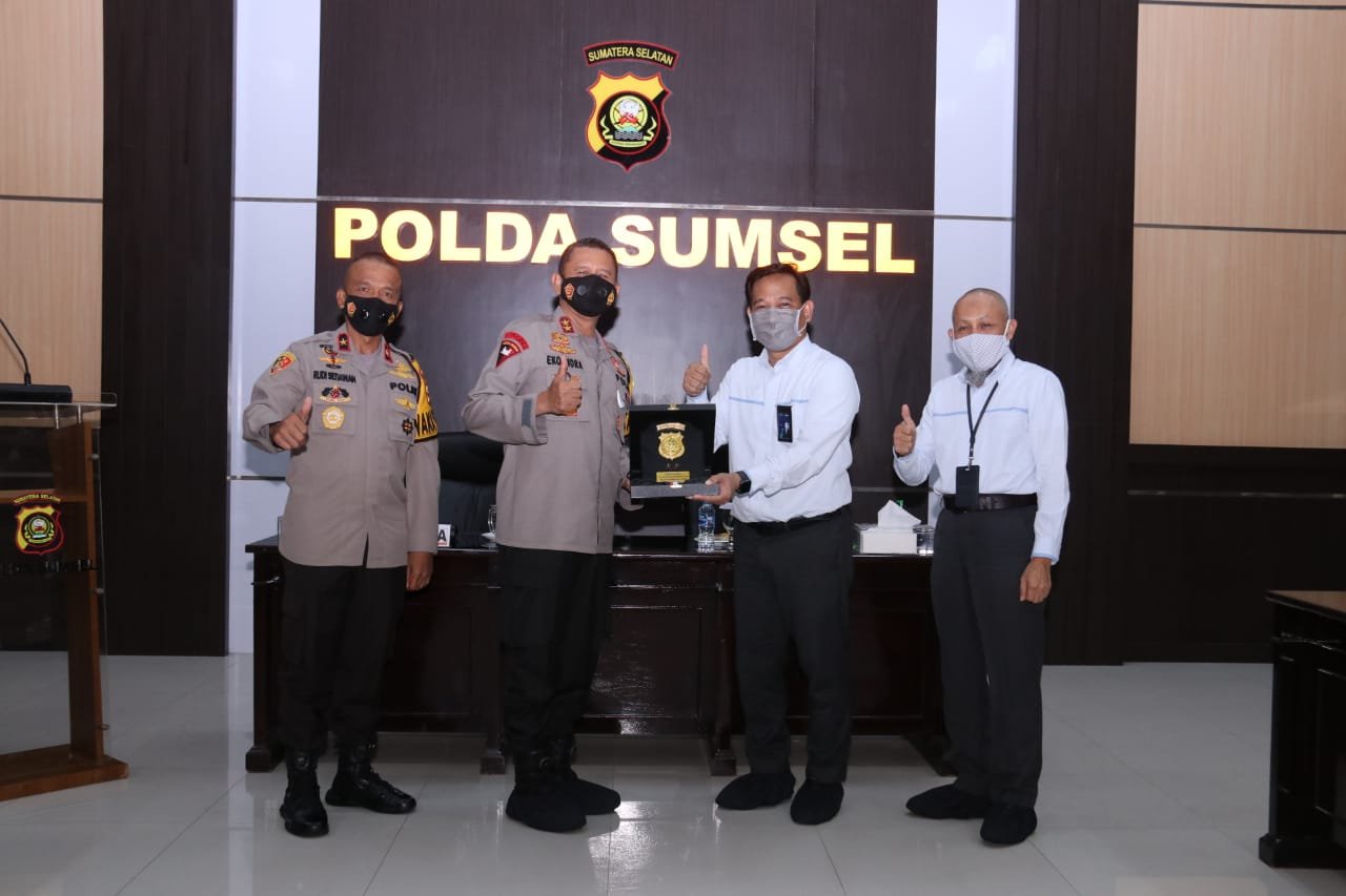 PALEMBANG, Mattanews.co – Kapolda Sumsel Irjen Pol Prof Dr Eko Indra Heri S, didampingi PJU Polda Sumsel menerima Penghargaan dari GM PLN Unit Induk Kebangkitan Sumatera Bagian Selatan (UIKSBS), Djoko Mulyono dan GM PLN WS2JB Daryono beserta Staf, di Gedung Promoter LT III Ruang Rekonfu Polda Sumsel, Selasa (03/11/2020).