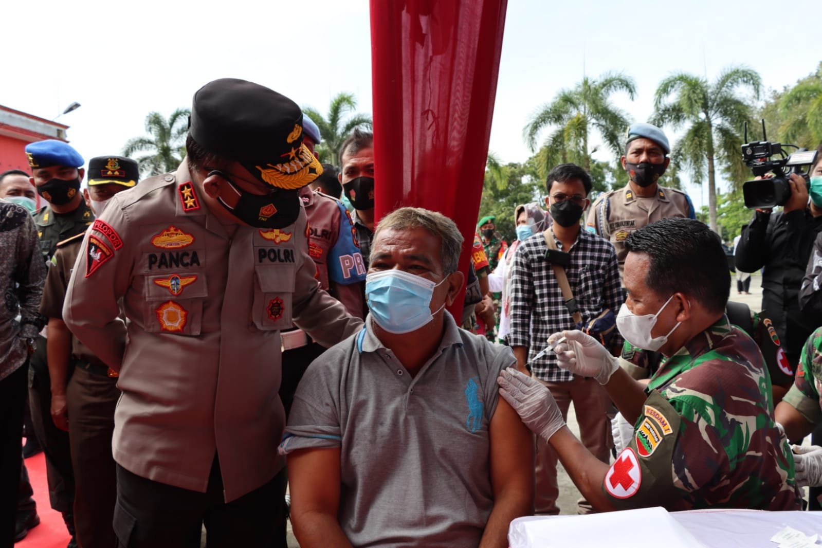 MATTANEWS.CO, MEDAN – Kapolda Sumut Irjen Pol Panca Putra meninjau pelaksanaan vaksinasi serentak bagi lansia yang digelar di lapangan Stadion Mutiara Kisaran, Jumat (11/02)