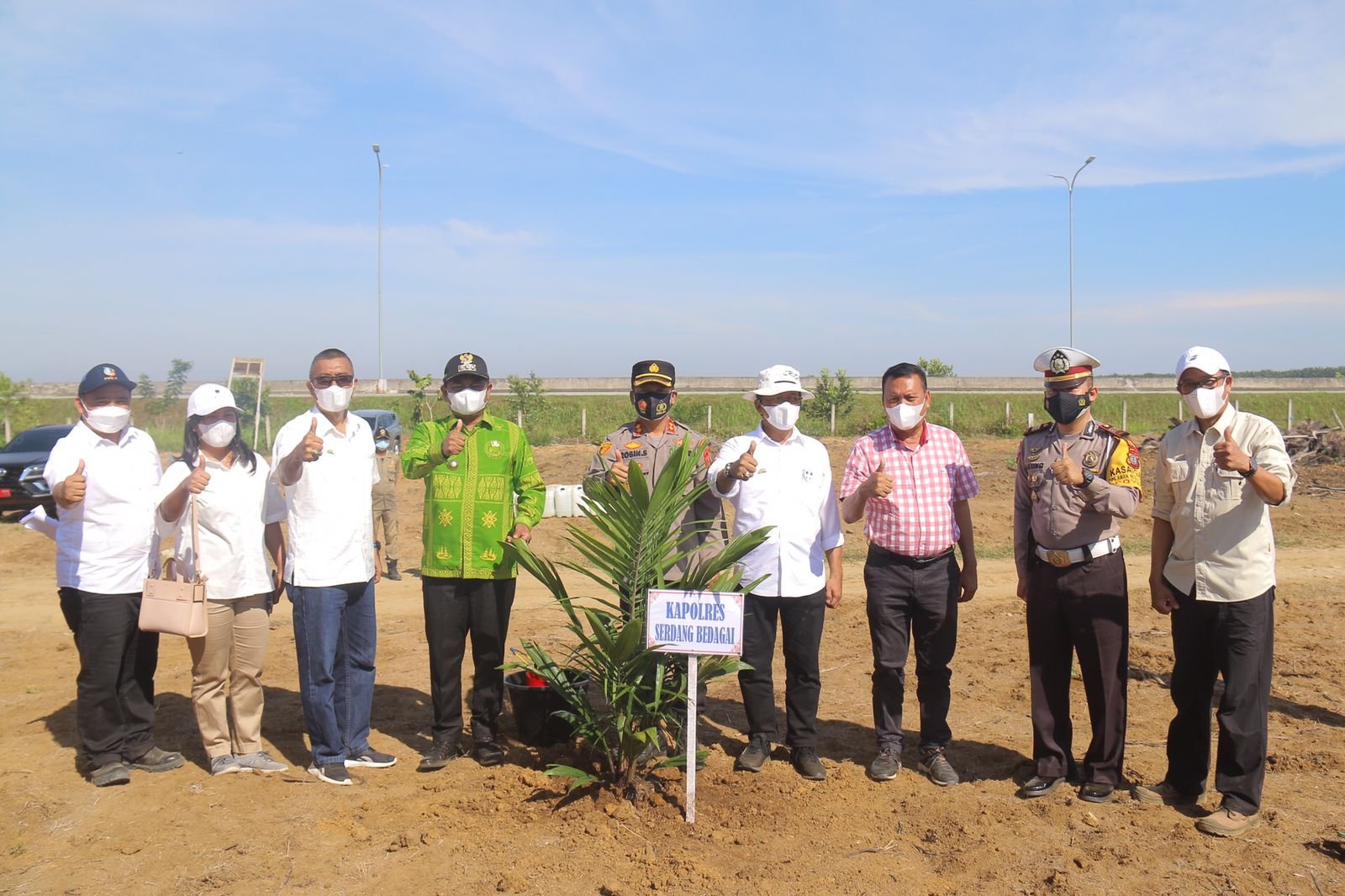 MATTANEWS.CO, SERGAI – Kapolres Sergai AKBP Robin Simatupang dan Bupati Sergai menghadiri kegiatan penanaman perdana kelapa sawit PTPN III Kebun Tanah Raja di Dusun I, Desa Firdaus, Kecamatan Sei Rampah, Kabupaten Sergai, Jumat (15/10/2021).
