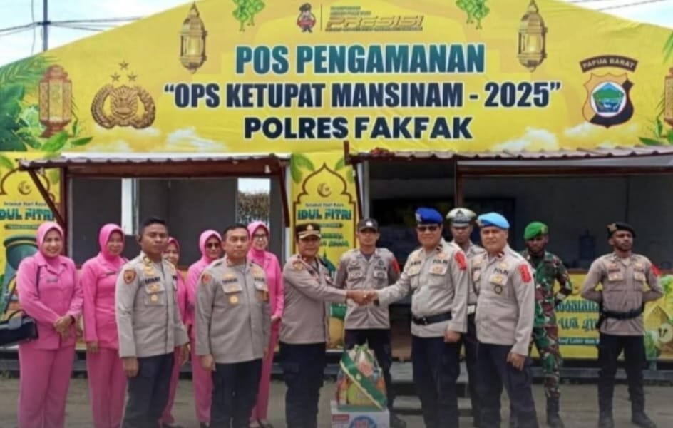 MATTANEWS.CO, FAKFAK – Kapolres Fakfak, AKBP Hendriyana SE.,MH dudampingi Ketua Bhayangkari Cabang Fakfak Ny Fenny Hendriyana, kunjungi Pos Pengamanan (PAM) dan Pos Pelayanani (Pos YAN) Operasi Ketupat Mansinam 2025, Sabtu (5/4/2025).