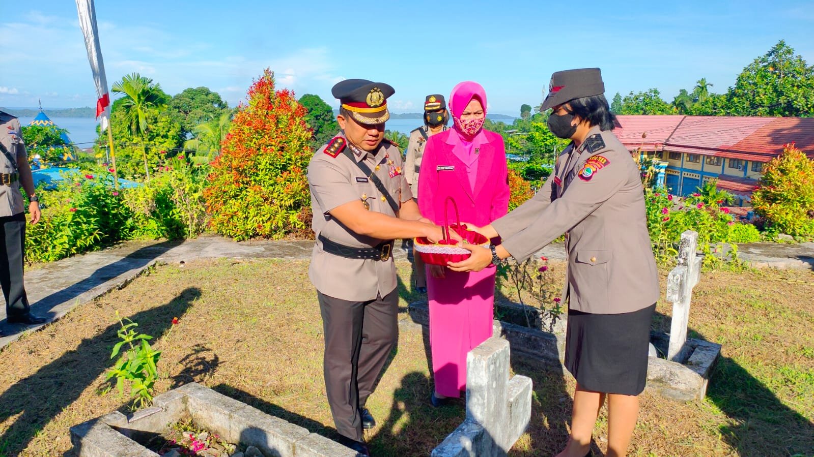Hadir dalam pelaksanan Ziarah diantaranya, Ketua Bhayangkari Cabang Fakfak Ny. Fenny Hendriyana, Waka Polres Kompol Indro Rizkiadi, SIK, Para Pejabat Utama, Para Personil Polres Fakfak dan Ibu-Ibu Bhayangkari Cabang Fakfak.