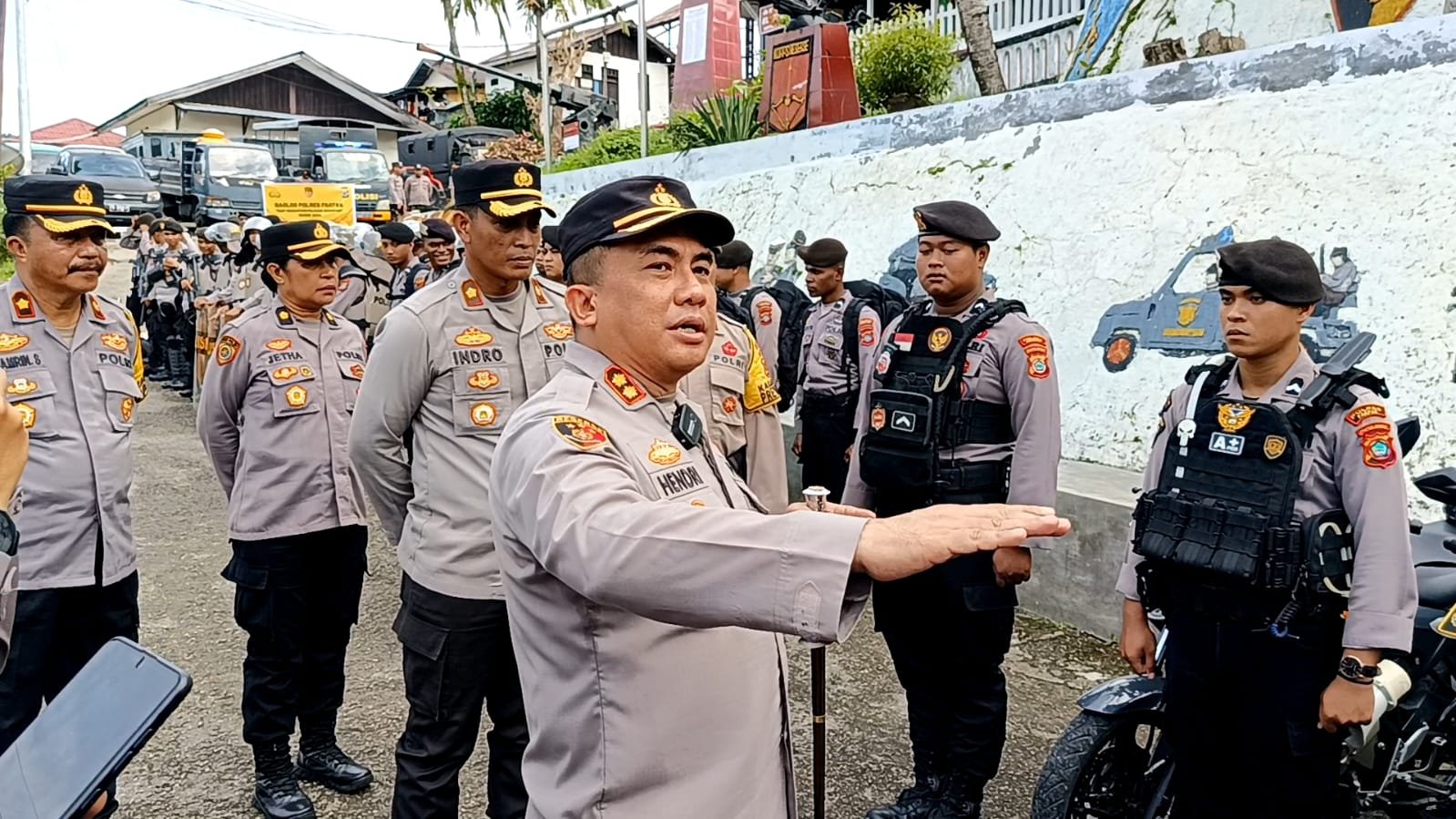 Pantauan Mattanews.co, Kapolres Hendriyana di dampingi Wakapolsek Fakfak Kompol Indro Rizkiadi melakukan pengecekan para personel dan sejumlah alat pengamanan untuk Pilkada Fakfak 2024.
