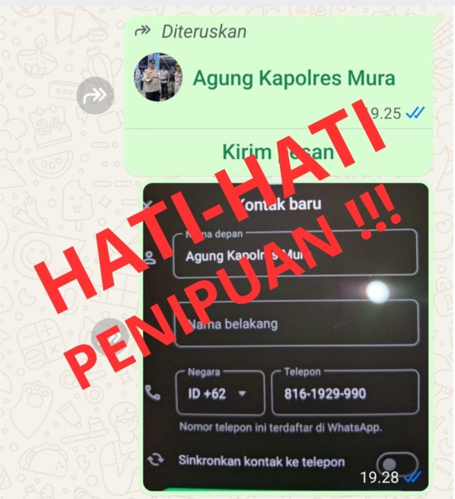 Kapolres mengimbau, kepada masyarakat untuk tidak menanggapi permintaan atau komunikasi apa pun dari akun dan nomor yang mencurigakan, terutama jika mengatasnamakan dirinya untuk kepentingan pribadi, permintaan dana, atau informasi sensitif lainnya.