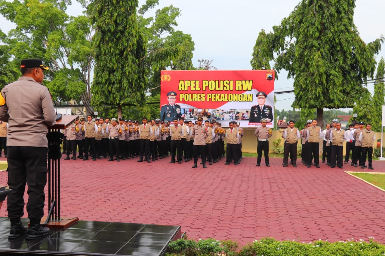 Apel digelar di halaman Polres Pekalongan yang diikuti oleh seluruh Pejabat Utama Polres Pekalongan dan seluruh personel yang bertugas sebagai Polisi RW jajaran Polres Pekalongan.