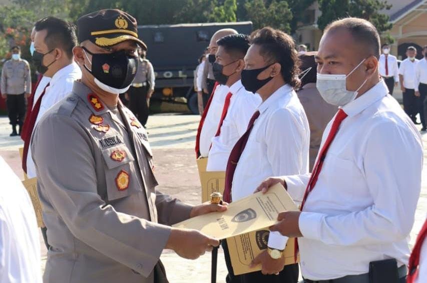 MATTANEWS.CO, SIMALUNGUN – Disela-sela memimpin apel pagi di Lapangan Asrama Polisi (Aspol), Kapolres Simalungun AKBP Nicolas Dedy Arifianto SH, SIK, MH memberikan penghargaan atau reward kepada personil, Senin (6/12/2021).