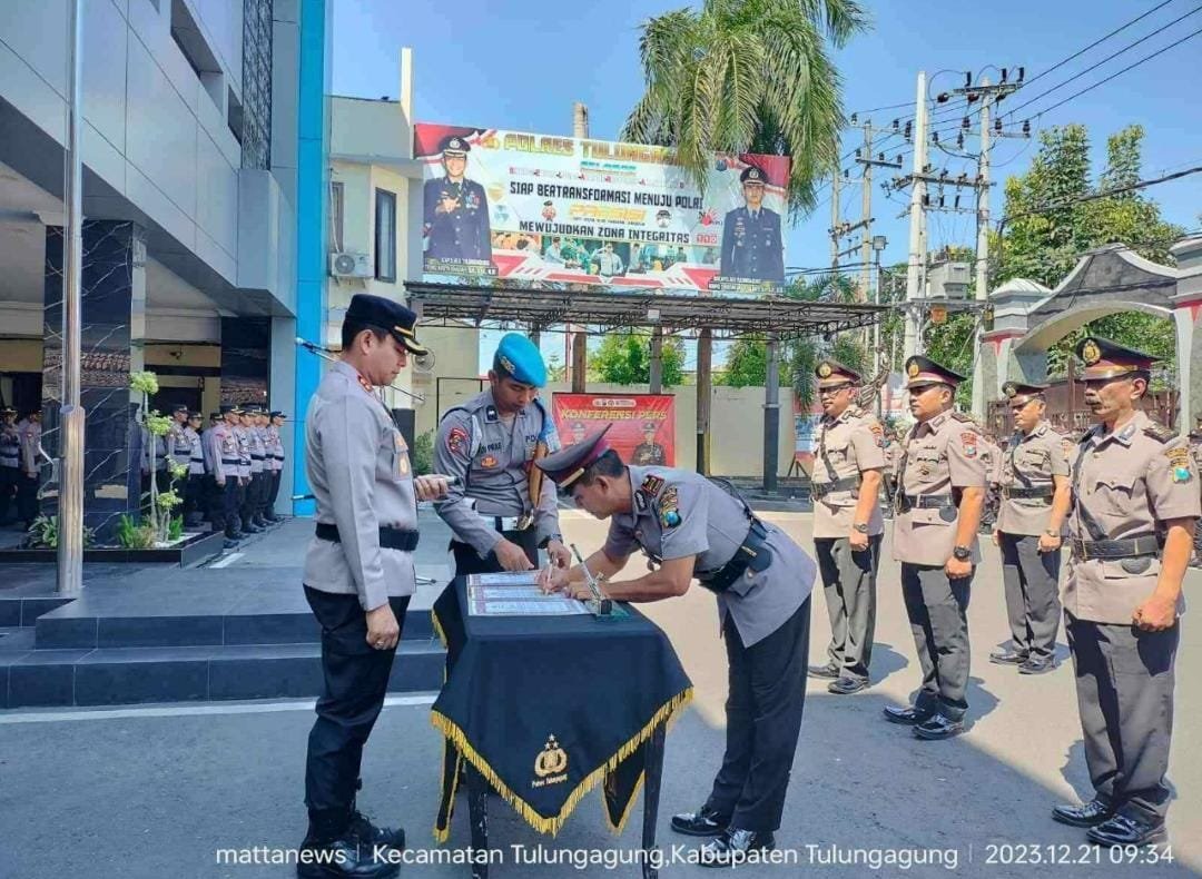 Upacara serah terima jabatan ini dipimpin oleh langsung oleh Kapolres Tulungagung, yakni Ajun Komisaris Besar Polisi (AKBP) Teuku Arsya Khadafi, S.H., S.I.K., M.Si., di halaman Mapolres setempat.