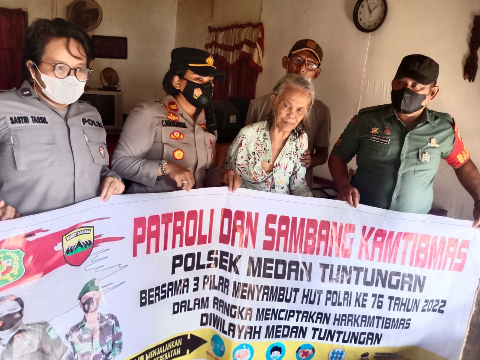 “Dalam rangka menyambut HUT Bhayangkara ke 76 yahun 2022. Kami dari Polsek Medan Tuntungan beserta 3 pilar (Danramil/Camat) mengadakan kegiatan Anjangsana dan Bakti Sosial ke warga atau masyarakat yang sakit cacat dan orang yang tidak mampu di kecamatan ini,” ungkapnya.