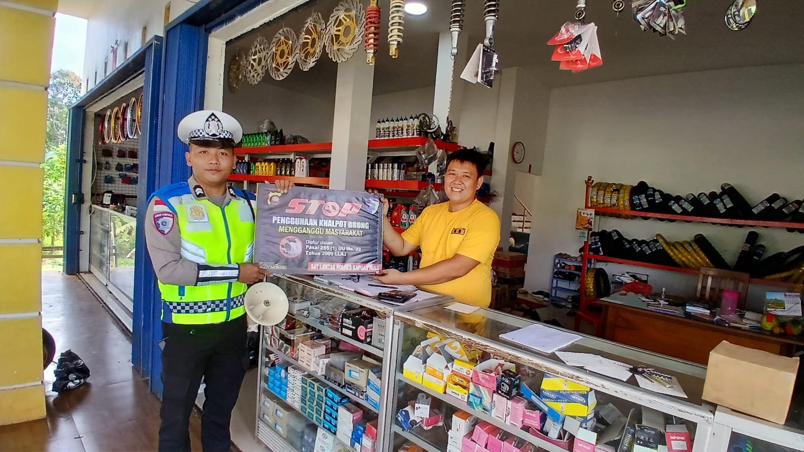 Di Wilson Jaya Motor, AKP Cahya memaparkan Pasal 285 ayat (1) jo Pasal 106 ayat (3) UU No. 22/2009: penggunaan knalpot di luar spesifikasi pabrikan melanggar persyaratan laik jalan dan berisiko sanksi pidana kurungan atau denda.