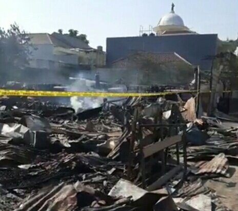 Bangunan yang terbakar adalah lapak gas elpiji dan pengepul barang bekas. Lima unit mobil bak terbuka berisi tabung gas ikut terbakar.