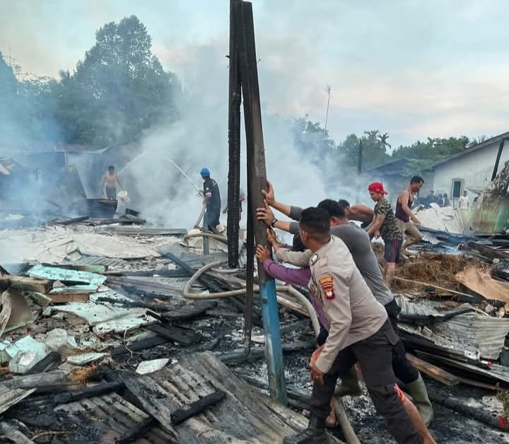 Dikatakan Kapolsek, meskipun api telah dipadamkan, puing-puing bangunan yang hangus menjadi saksi bisu dahsyatnya kebakaran ini.