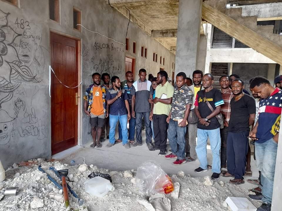 Inisiasi mahasiswa dimulai dari membuat pagar dengan atap seng di area asrama Deiyai hingga memasang pintu dan jendela.