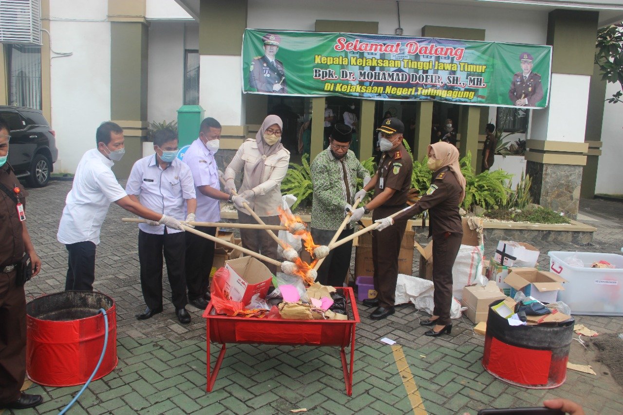 Putra daerah asli Tulungagung menambahkan, barang bukti yang dimusnahkan ini merupakan hasil dari rampasan dari putusan perkara tindak pidana umum yang sudah memiliki kekuatan hukum tetap.