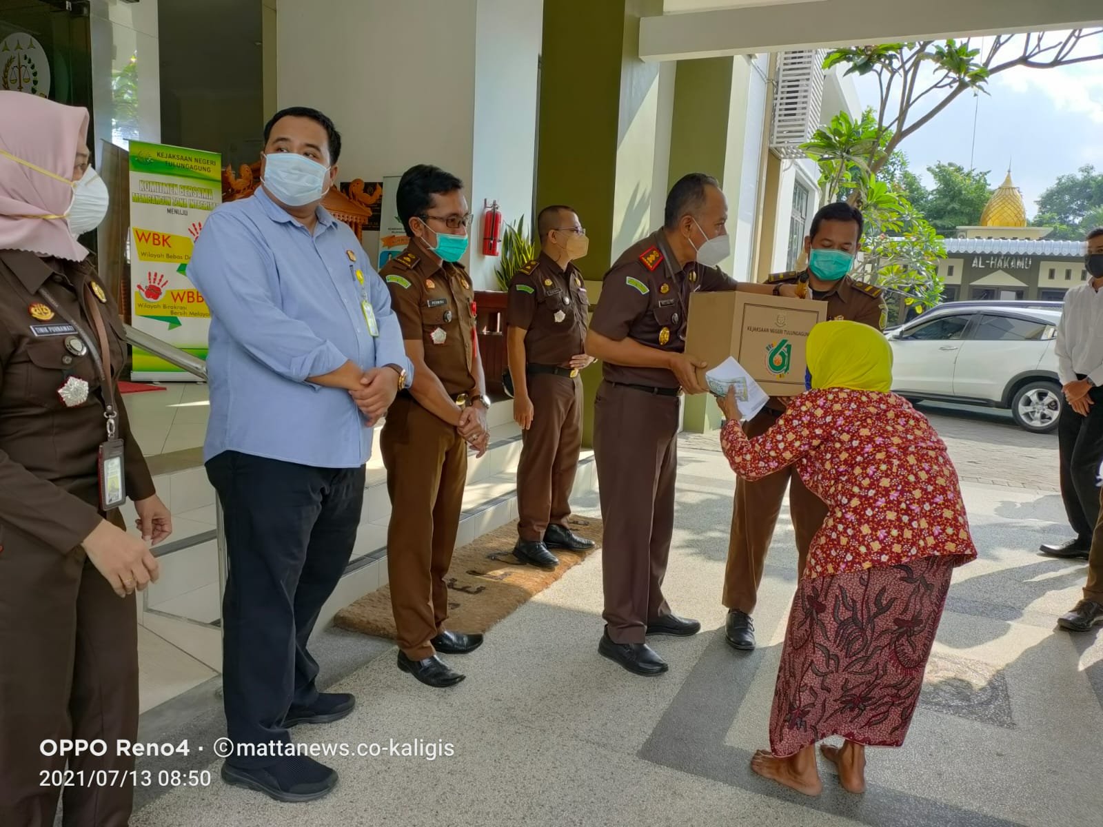 Ia menjelaskan, beberapa warga hadir di Kejaksaan secara simbolis menerima paket sembako tersebut.
