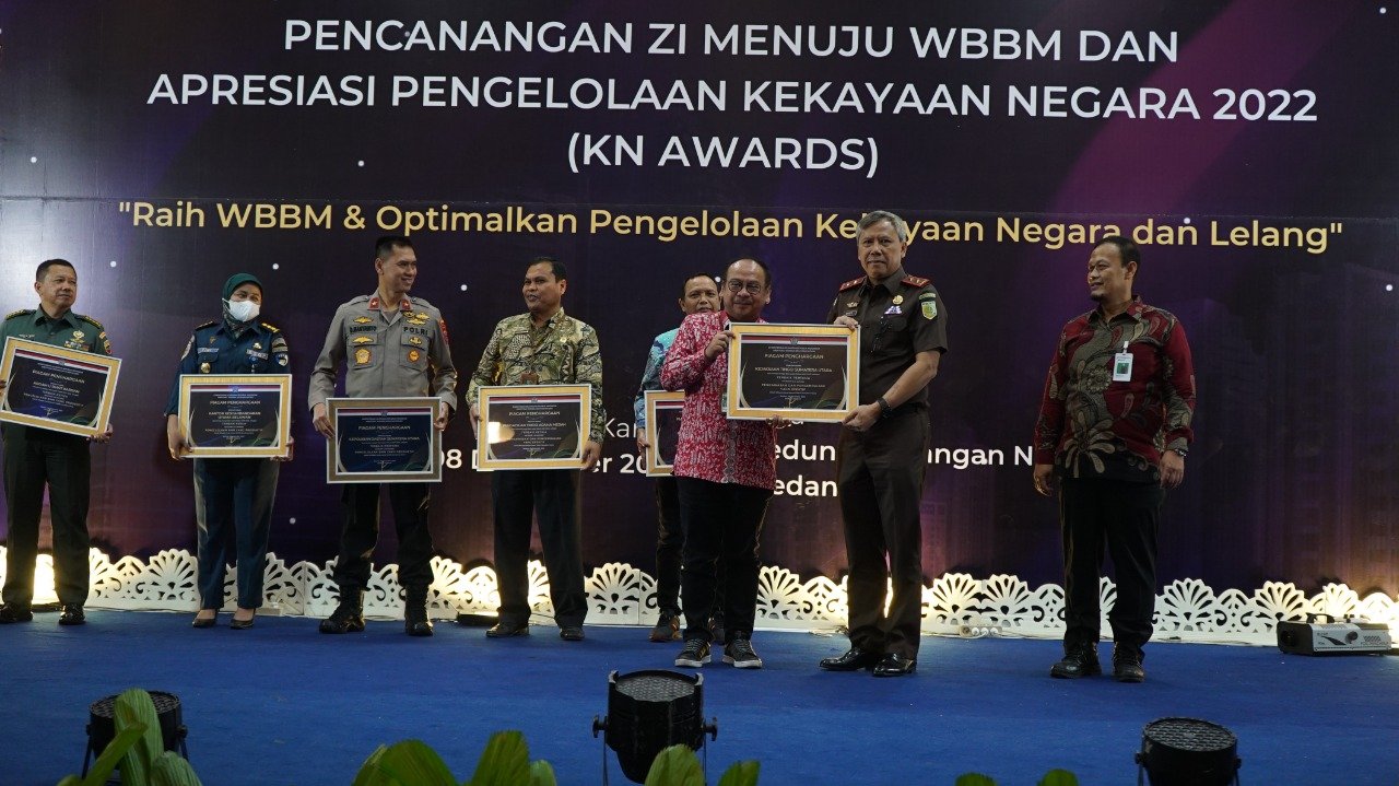 MATTANEWS.CO, MEDAN – Kejaksaan Tinggi Sumatera Utara (Kejati Sumut) peroleh penggargaan sebagai Juara 1 kategori Pengawasan dan Pengendalian Efektif, diberikan Kepala Kanwil Direktorat Jenderal Kekayaan Negara (DJKN) Sumut, kepada Kajati Sumut, di Aula Rekreasi Gedung Keuangan Negara Jalan Pangeran Diponegoro Medan, Sumatera Utara, Jumat (9/12/2022).