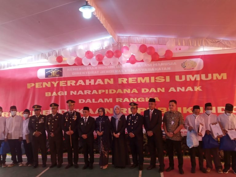 MATTANEWS.CO, OGAN ILIR – 747 Warga Binaan Pemasyarakatan (WBP) Lapas Kelas II Tanjung Raja, menerima remisi umum HUT RI dari Kemenkumham yang diserahkan simbolis oleh Wabup Ogan Ilir, Ardani, di halaman lapas setempat, Rabu (17/8/2022).
