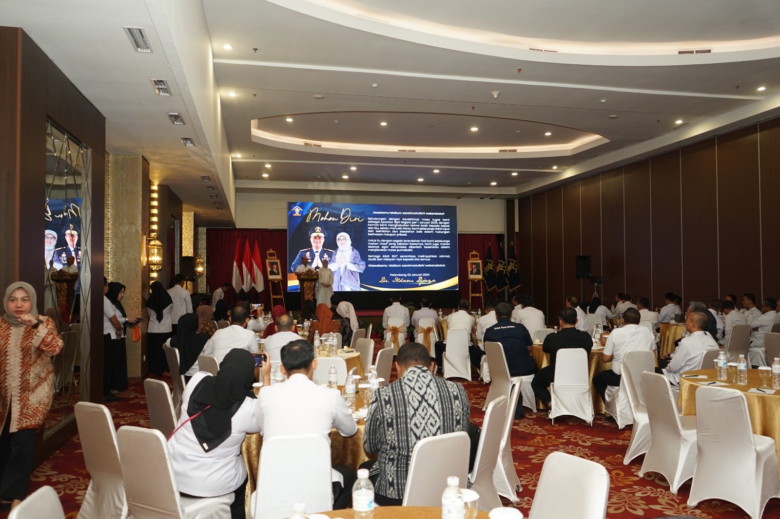 MATTANEWS.CO, PALEMBANG – Kantor Wilayah Kementerian Hukum dan HAM Sumatera Selatan menggelar acara pisah sambut sekaligus pelepasan purna bakti Kepala Kantor Wilayah Kemenkumham Sumsel, bertempat di di Hotel Beston Palembang (30/12). Kakanwil Dr. Ilham Djaya, memasuki masa purna baktinya terhitung 31 Desember 2024. Ilham Djaya bertugas di Kanwil Sumsel selama 2 Tahun. Beliau mengawali tugasnya kembali di bumi Sriwijaya sejak bulan Januari 2022 lalu.