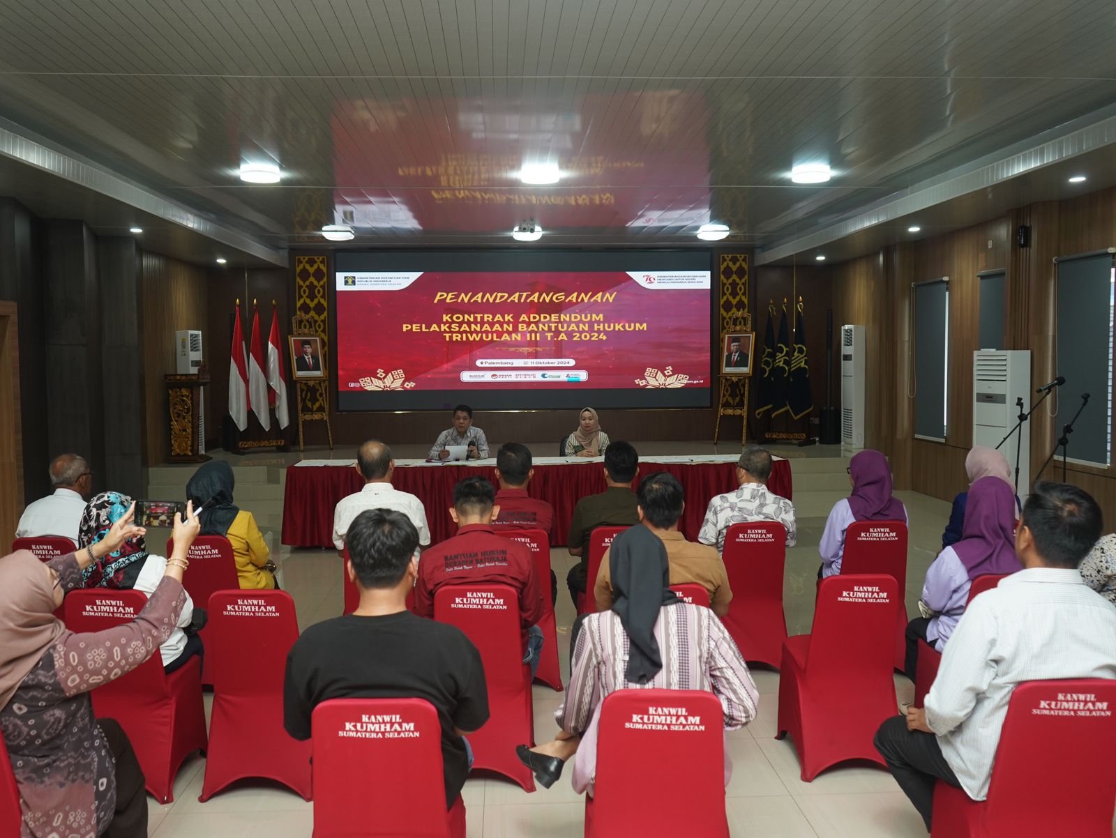 MATTANEWS.CO, PALEMBANG – Kantor Wilayah Kementerian Hukum dan HAM Sumatra Selatan melakukan pembaruan kontrak (adendum) dengan 8 (delapan) Organisasi Bantuan Hukum (OBH) yang terakreditasi, bertempat di Aula Musi Kantor Wilayah, Jumat (11/10).