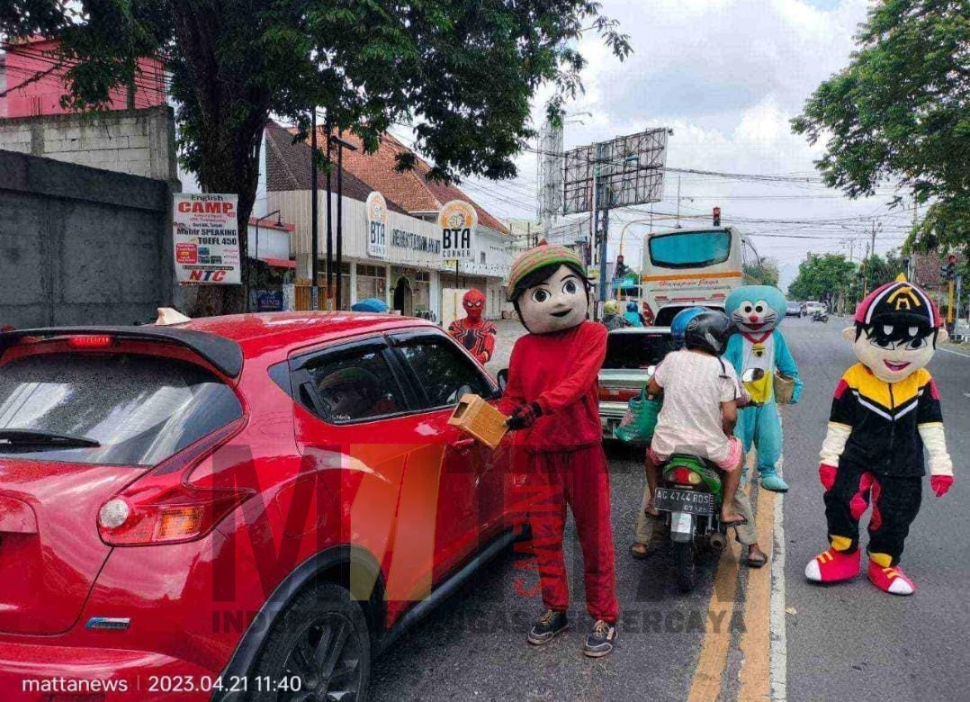 MATTANEWS.CO,TULUNGAGUNG – Menjelang datangnya Hari Raya Idul Fitri 1444 Hijriah di beberapa persimpangan traffic light (Lampu lalu-lintas) di Kabupaten Tulungagung saat ini sering dijumpai badut yang menghibur para pengendara kendaraan baik roda empat maupun dua.