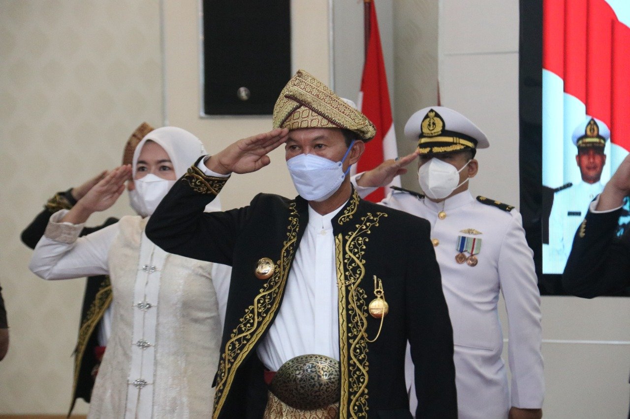 MATTANEWS.CO,PALEMBANG – Bersama Wakil Walikota berserta jajaran Forum Koordinasi Pimpinan Daerah (Forkompinda), Walikota Palembang, H. Harnojoyo ikuti langsung upacara Peringatan Hari Lahir Pancasila Tahun 2021 yang dipimpin oleh Presiden Republik Indonesia, Joko Widodo secara virtual dari Istana Kepresidenan Bogor Jawa Barat, Selasa 1 Juni 2021.