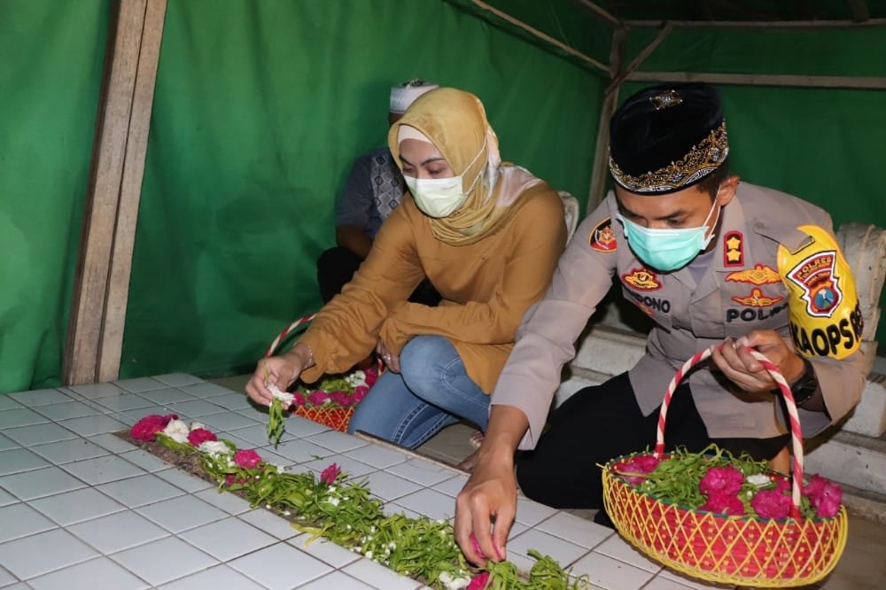 TULUNGAGUNG, Mattanews.co – Kapolres Tulungagung, AKBP Handono Subiakto bersama istri dan jajarannya melakukan ziarah kubur ke makam Syekh Basyarudin Srigading, pada Jumat (4/12/2020).