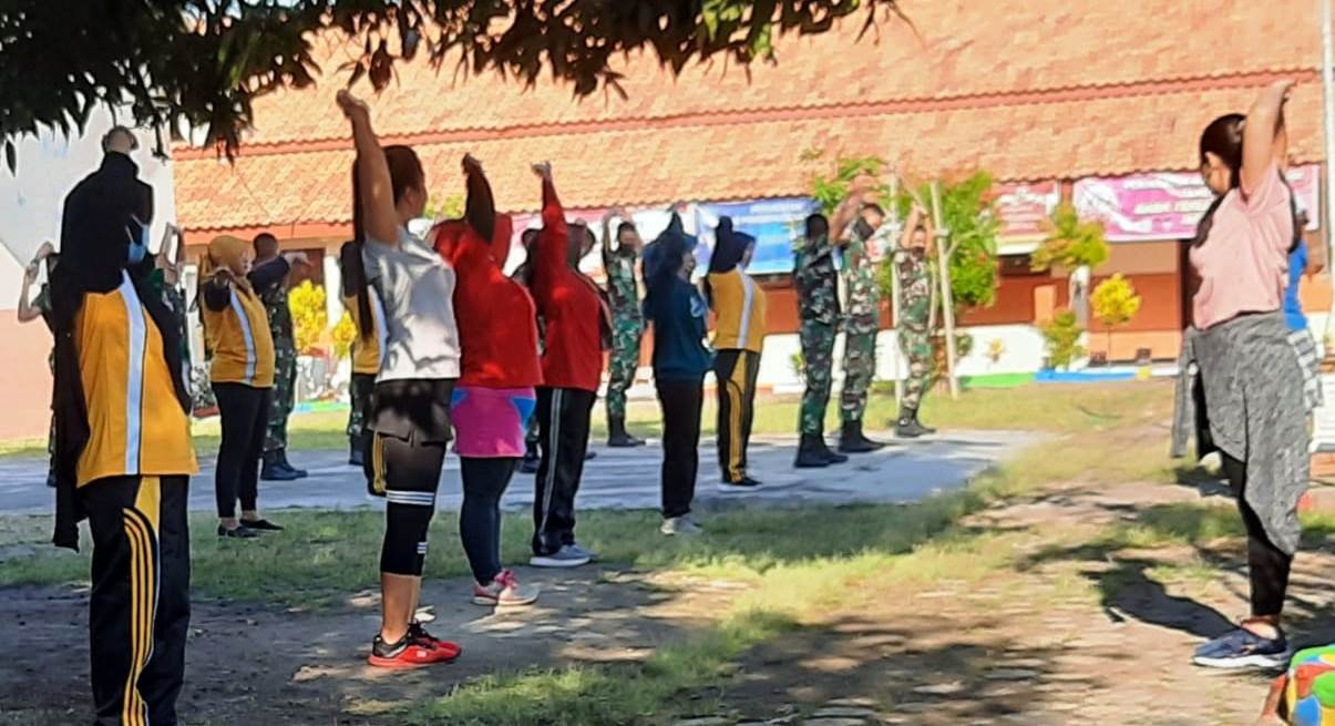 Yakni, sebelum berangkat ke lokasi pengecoran jalan maupun rehab RTLH, para TNI anggota Satgas TMMD itu, bersama perangkat desa dan warga setempat melakukan senam pagi bersama.