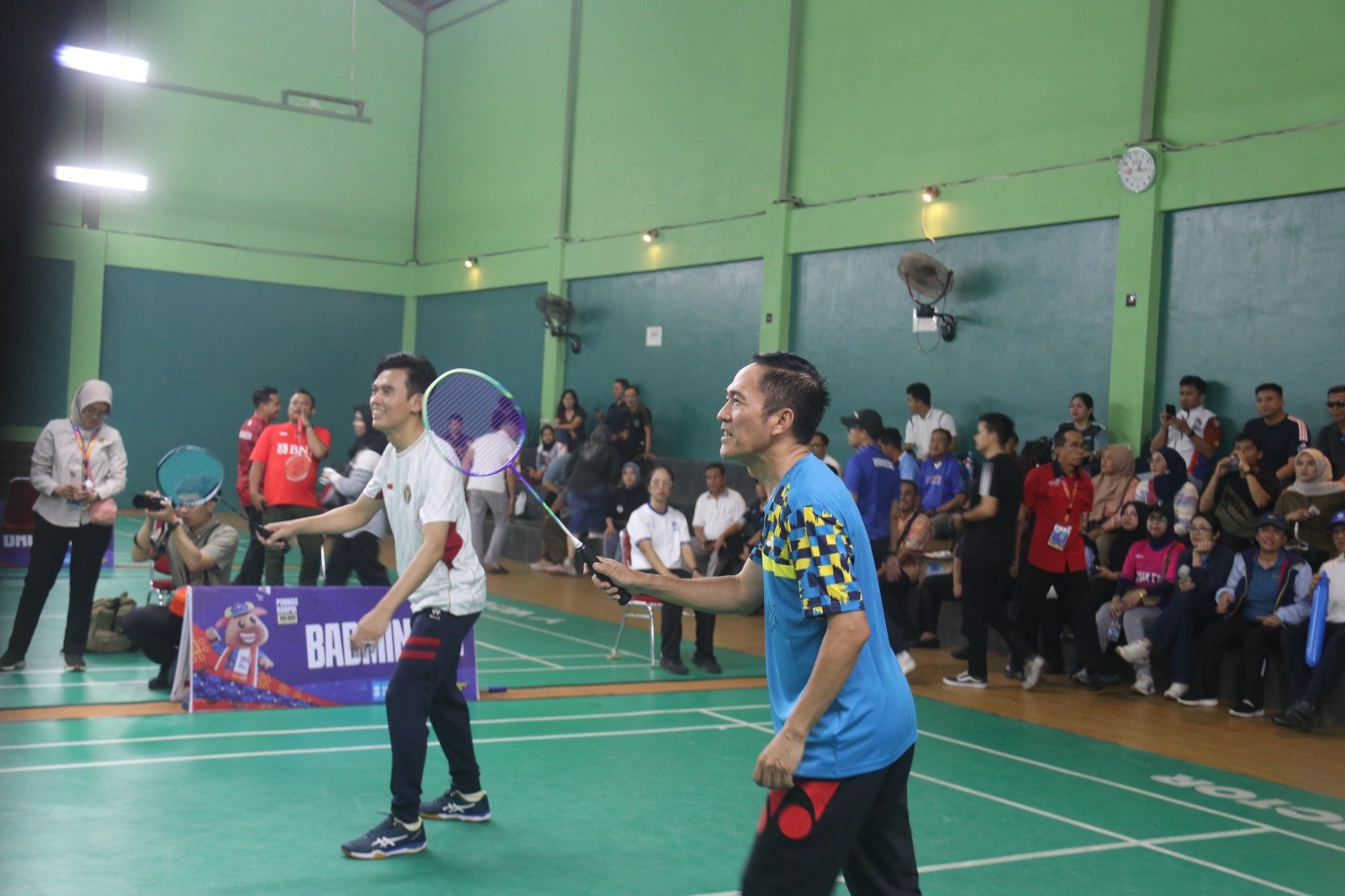 Kepala BKN Prof Zudan Puji Permainan Walikota Palembang di Lapangan Bulu Tangkis