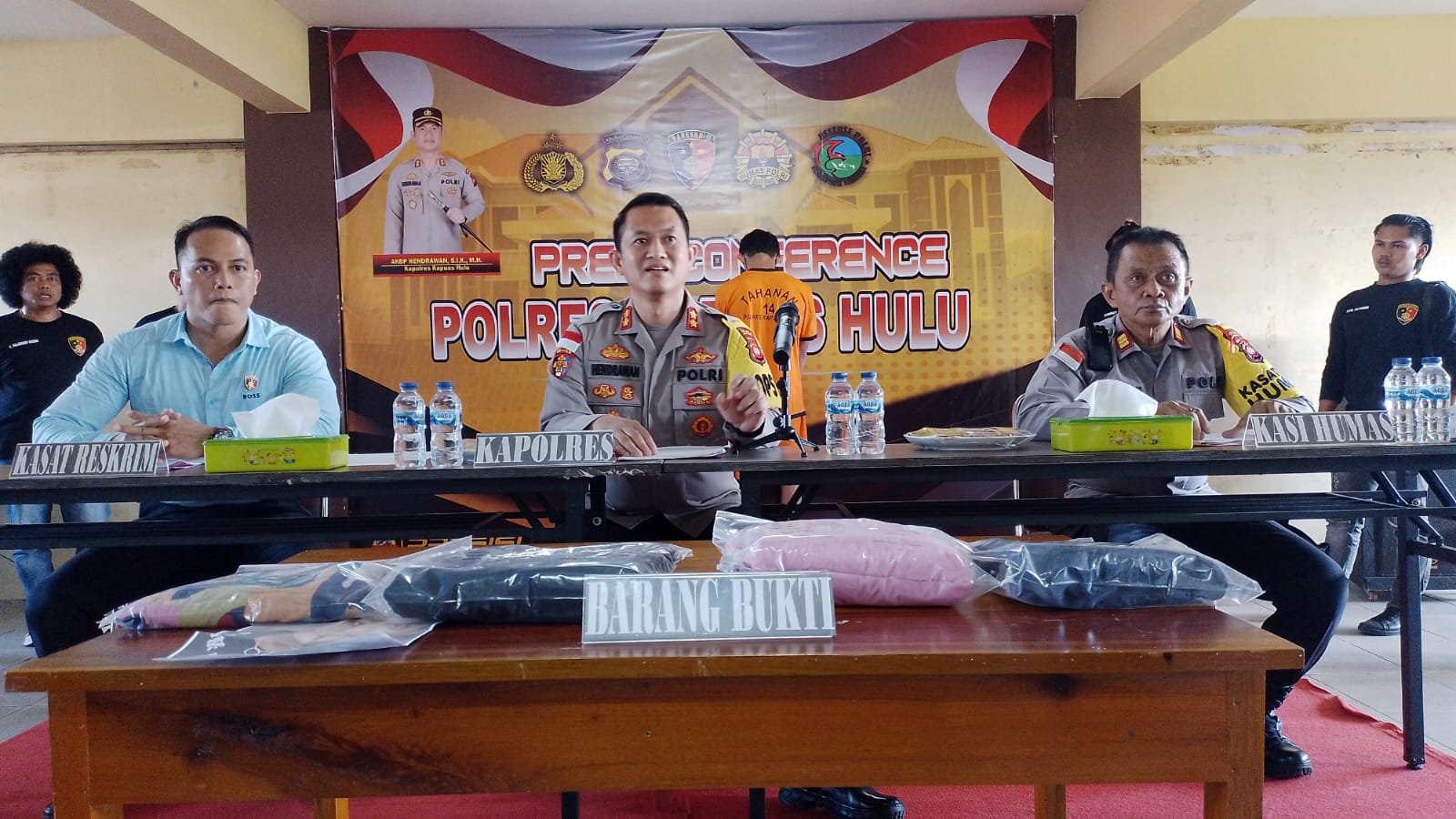 Polres Kapuas Hulu menggelar Press release terkait pengungkapan kasus penemuan mayat tenaga medis/ bidan yang bekerja di PT. PIP Tengkawang Estate. Rabu (8/11/2023) _____///Foto: Bayu Hary Widodo.