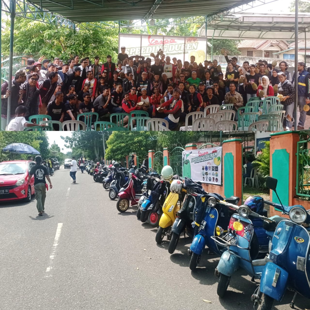 Giat bertajuk Vespa Speeding Duren vol IV dan Prabu Scooter Club (PSC) sebagai penyelenggara. Acara tersebut bertempat dirumah Pandu Jalan Kemala Kelurahan Muara Dua Kecamatan Prabumulih Timur Kota Prabumulih, lebih dari 100 scooter berjejer rapi dipinggiran jalan lokasi kegiatan.