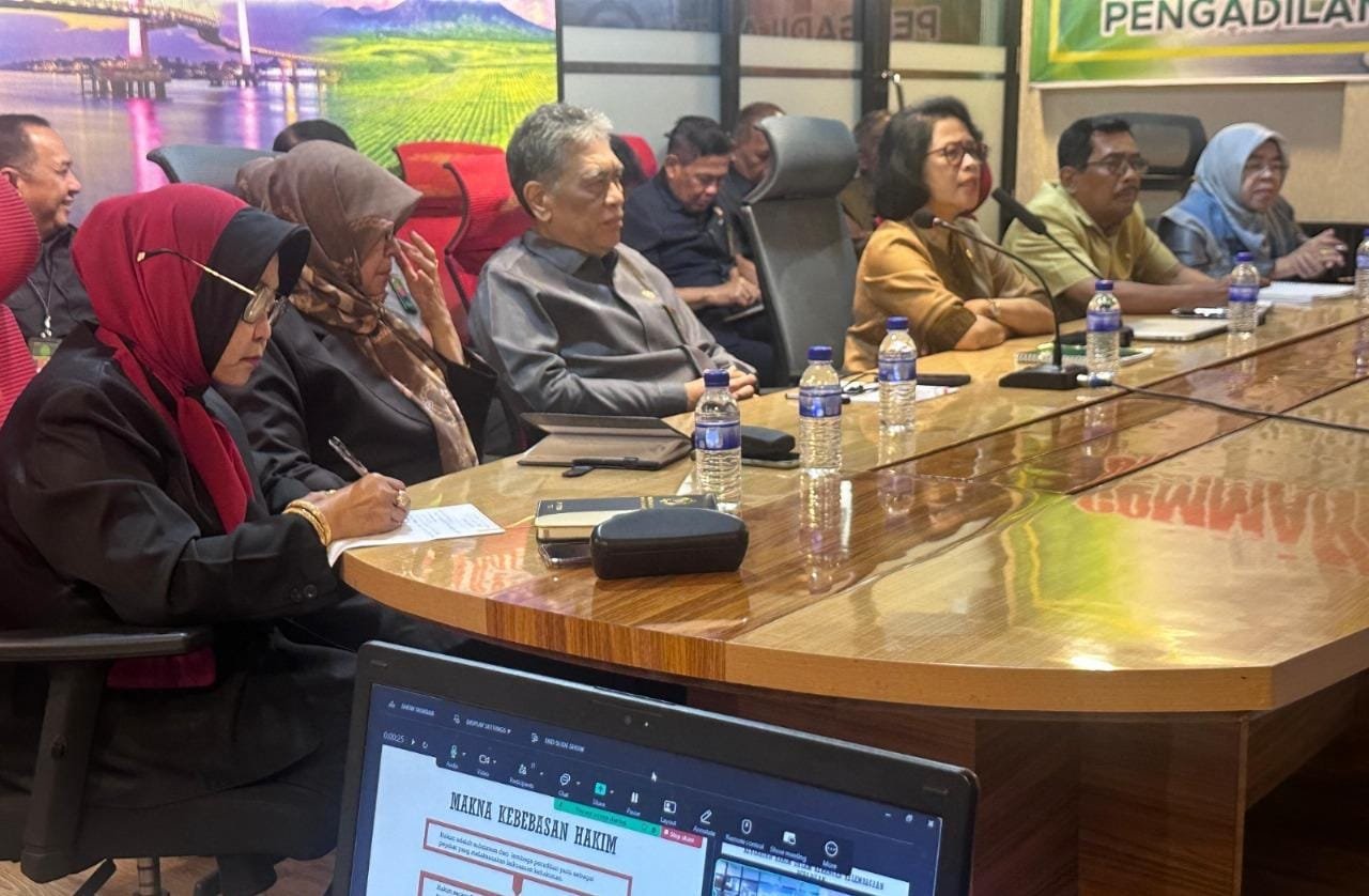 MATTANEWS.CO, JAMBI – Ketua Pengadilan Tinggi (PT) Jambi, Ifa Sudewi bersama Wakil Ketua PT Jambi, Abdul Azis memberikan pembinaan kepada seluruh hakim se-wilayah hukum PT Jambi. Kegiatan ini digelar pada Selasa (23/9/2025) dengan menghadirkan para ketua, wakil ketua, dan hakim dari seluruh pengadilan negeri di wilayah hukum PT Jambi.