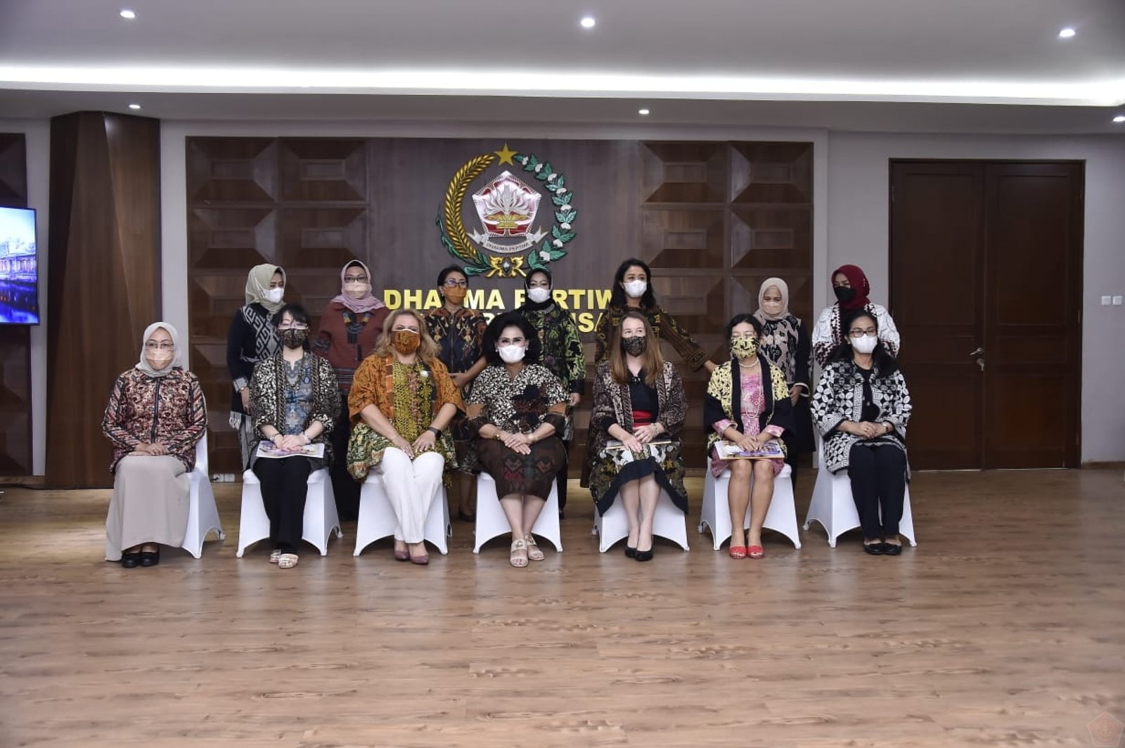 Courtesy Call tersebut dilaksanakan dalam rangka membahas kerjasama organisasi kewanitaan antara Dharma Pertiwi dengan Milat Spouse yang merupakan perkumpulan isteri-isteri Atase Pertahanan asing yang berdinas di Jakarta.