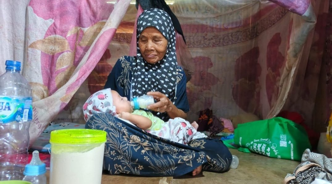 Sang nenek tak kuasa menahan haru ketika menceritakan perjuangannya merawat cucu kecil tanpa air bersih dan dengan kondisi ekonomi yang serba terbatas.